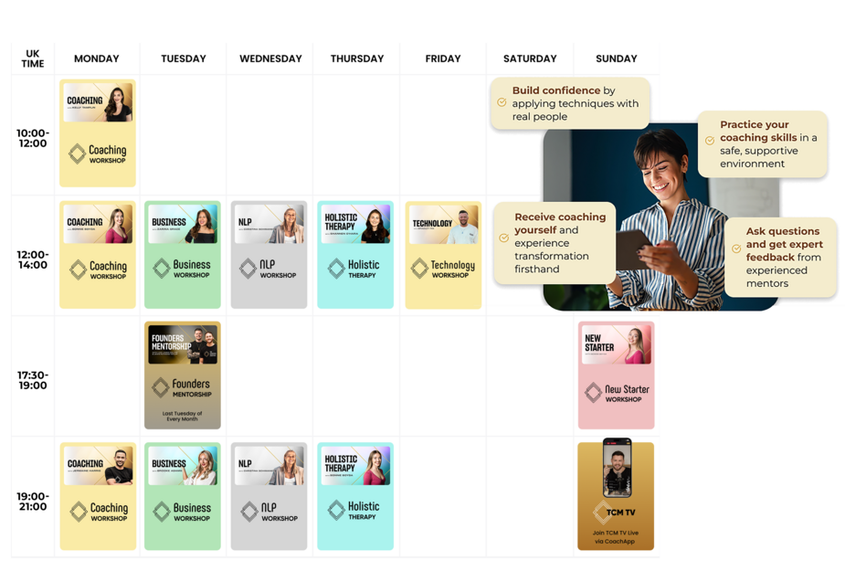 So you finally have everything you need in one place: the accreditations, the tech, the business engine, the community, and the mentorship, to coach your way to freedom.